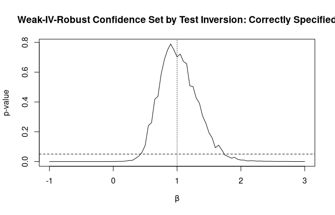 main = "Weak-IV-Robust Confidence Set by Test Inversion: Correctly Specified")