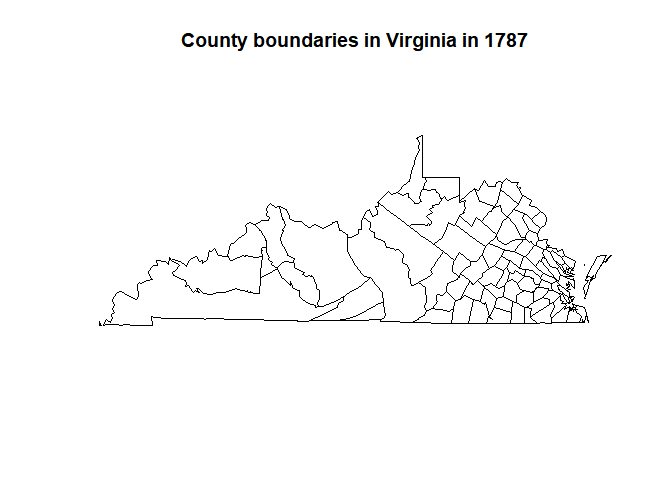 title("County boundaries in Virginia in 1787")