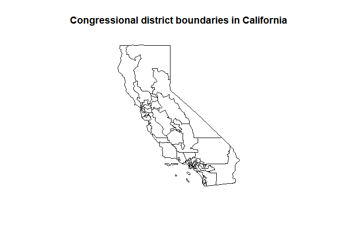 title("Congressional district boundaries in California")