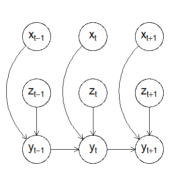 #> y gaussian y ~ -1 + z + varying(~x + lag(y)) + random(~1)