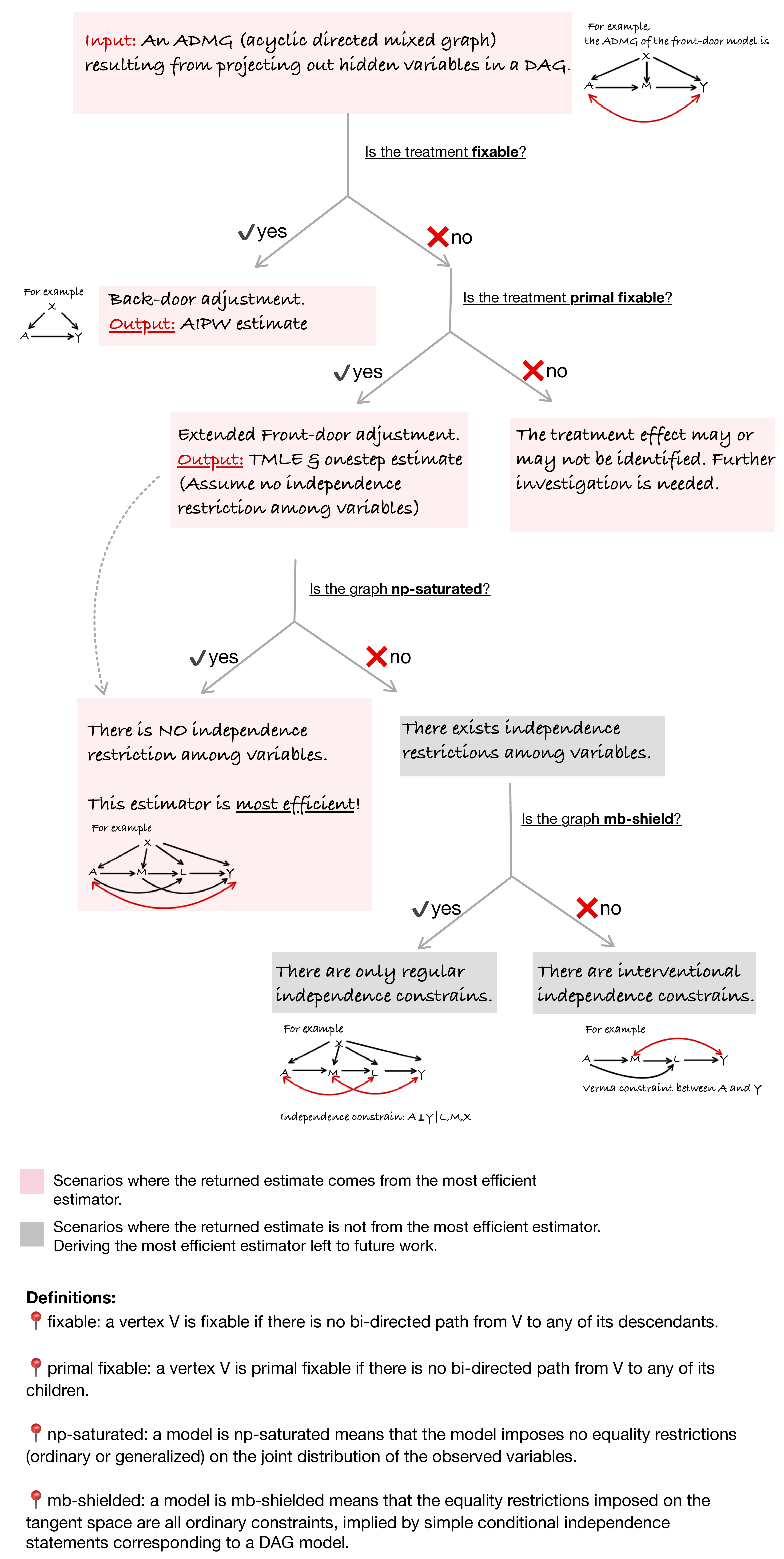 treatment='A', outcome='Y')## The treatment is not fixable but is primal fixable. Estimation provided via extended front-door functional.