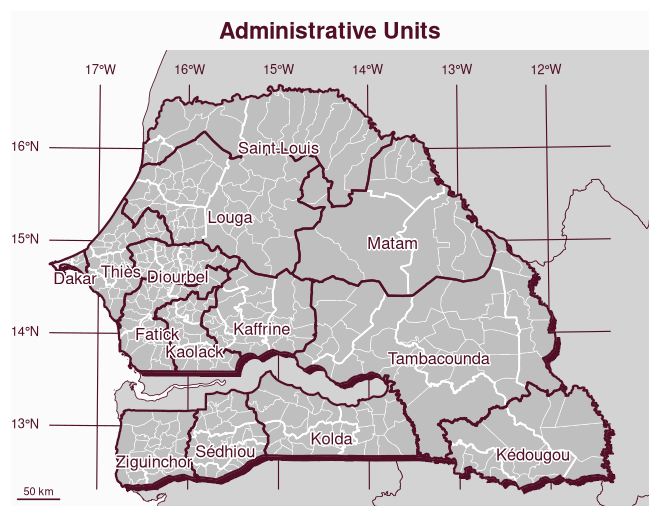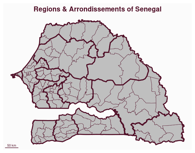 mf_title("Regions & Arrondissements of Senegal")