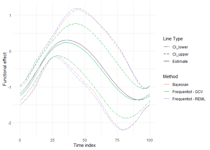 plot(refundBayes_FoSR)## Warning in ggplot2::geom_line(aes(type = .data$type, color = .data$type)):