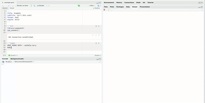 Use SAS, R, and Quarto Together