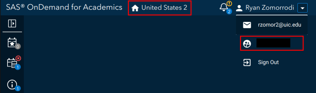 Once you have set up your account, log in and note the ODA server (in the picture below United States 2) and your username (under the email in the profile dropdown). We will need these for later.