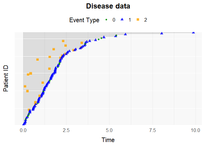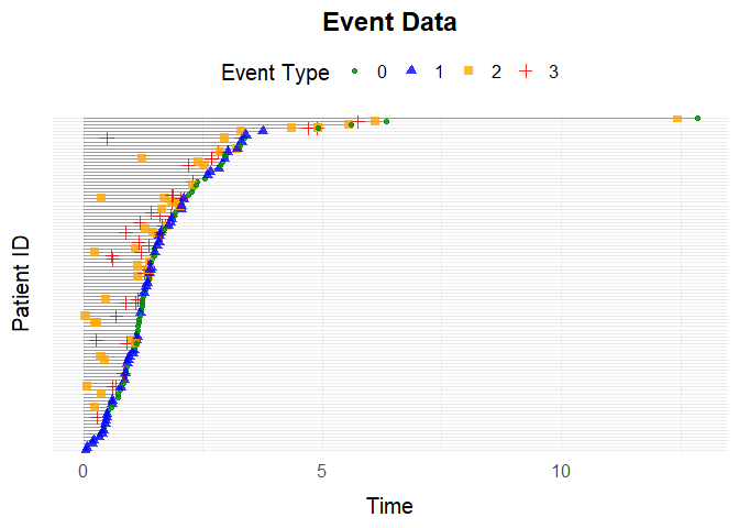 censoring (0), death (1), treatment (2), and covariate change (3). The