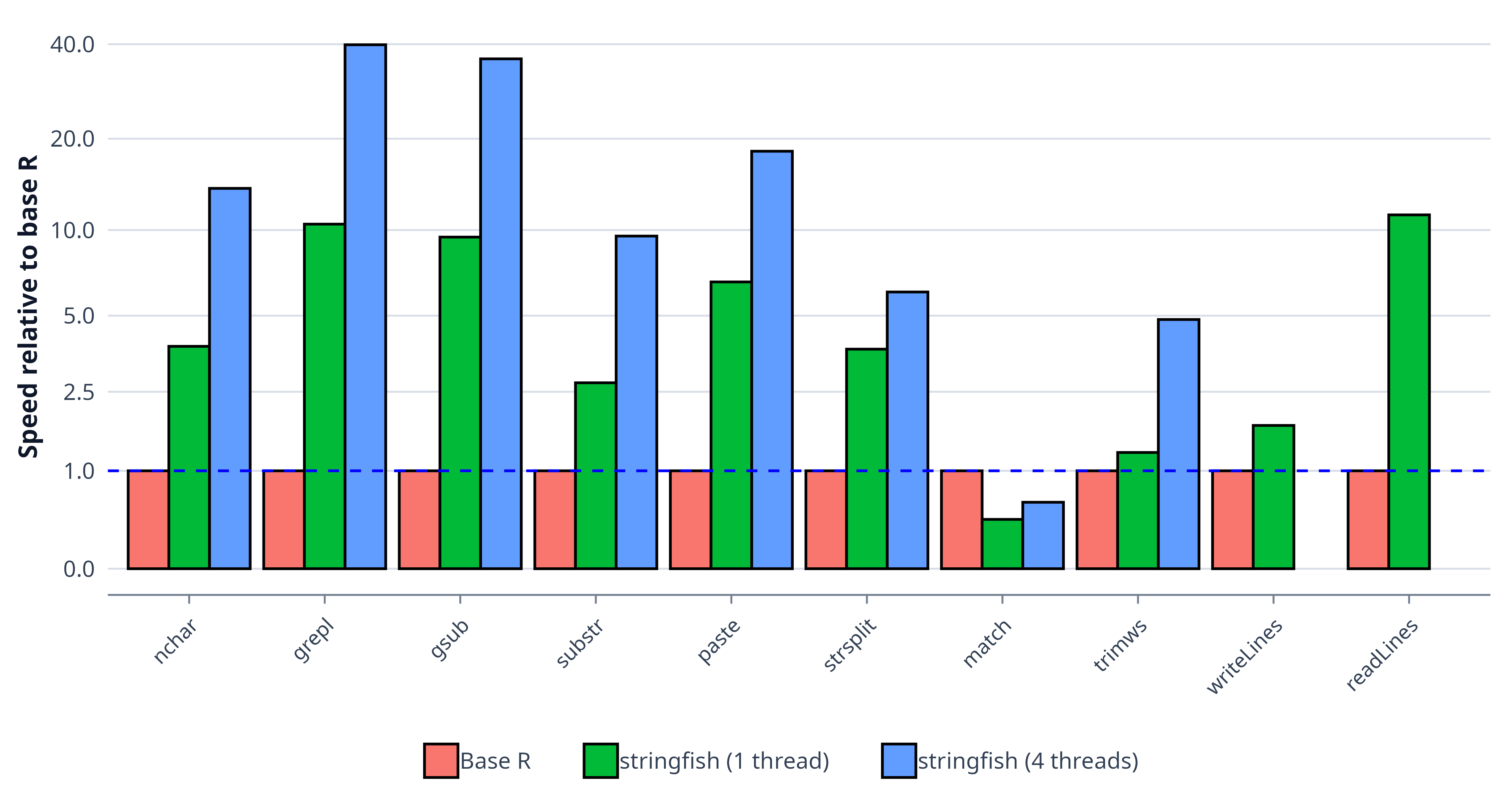 install.packages("stringfish", type="source", configure.args="--with-simd=AVX2")The simplest way to show the utility of the ALTREP framework is