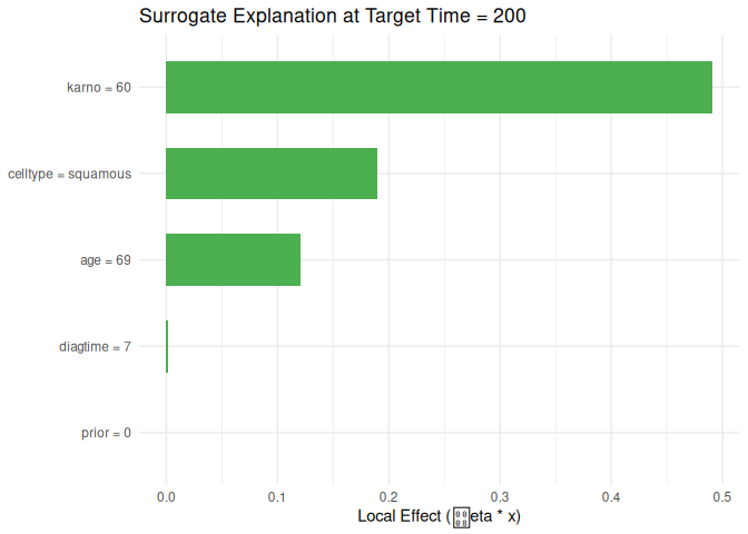 #> - Predictors: "age, karno, celltypesmallcell, celltypeadeno, celltypelarge"