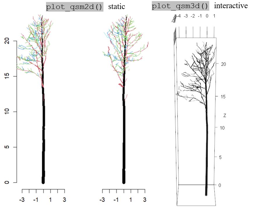 plot_qsm2d() and plot_qsm3d() output for