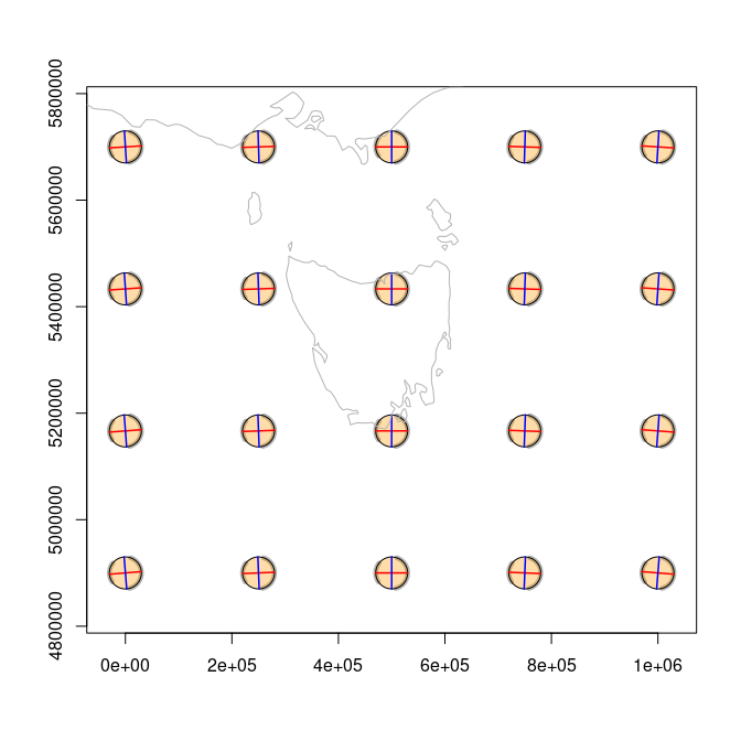 tissot(c(147, -42), "+proj=utm +zone=55 +south")